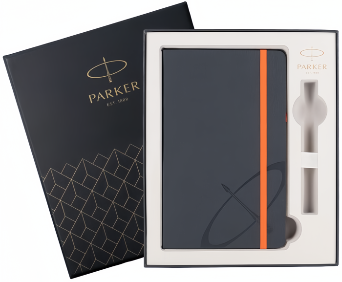 Подарочная коробка Parker с блокнотом от официального дилера Parker в Кургане. Вы можете дополнительно заказать гравировку, которая подчеркнет Вашу оригинальность и придаст памятность статусному подарку. Все ручки Паркер поставляются в фирменном футляре.