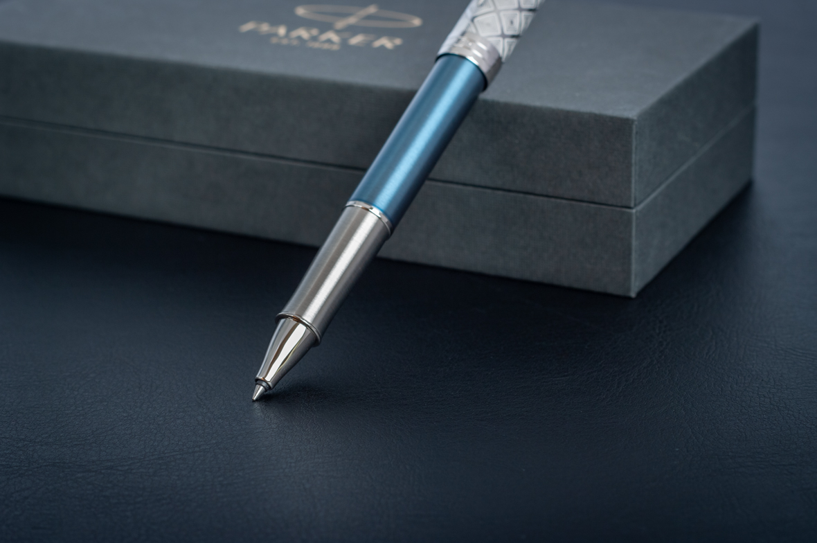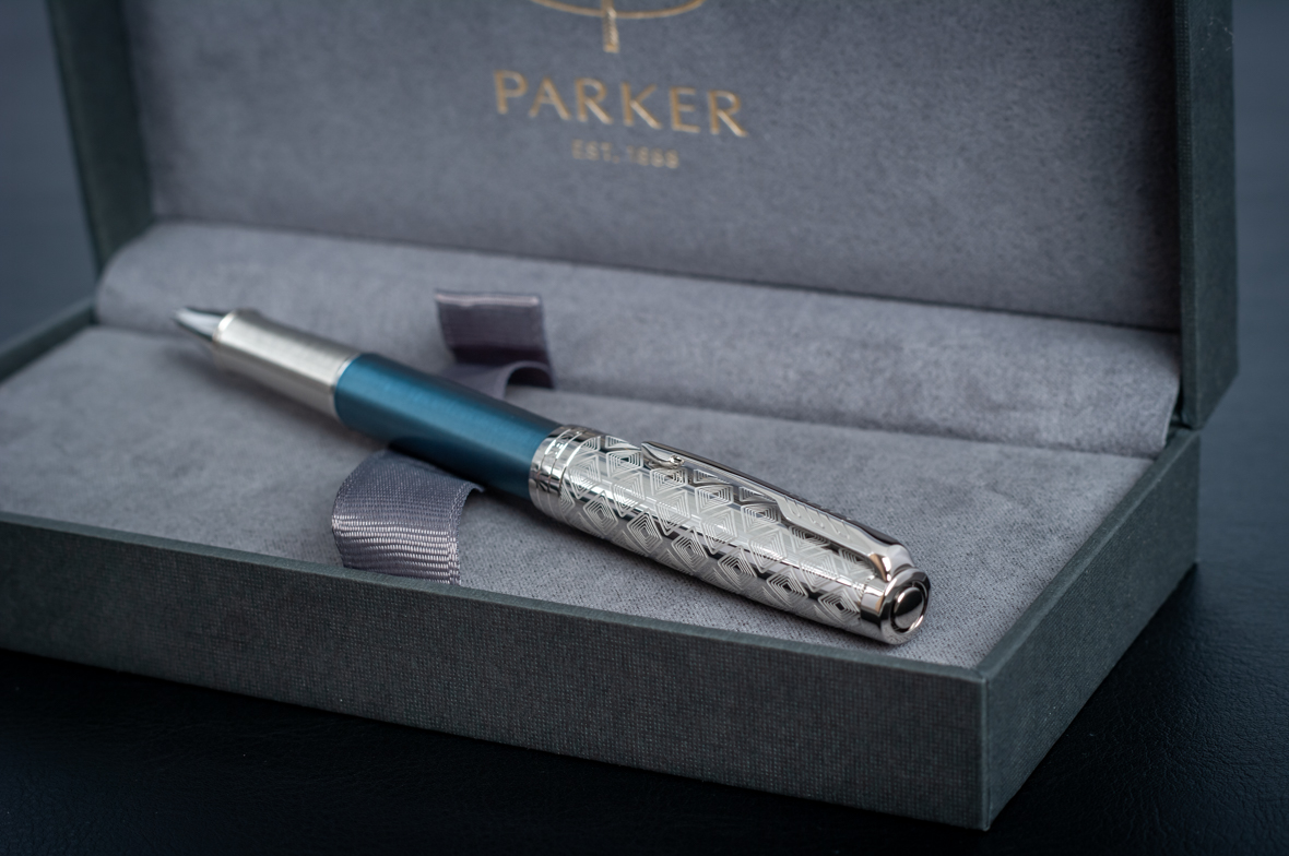 Ручка роллер Parker Sonnet Premium Metal Blue CT от официального дилера Parker в Кургане. Вы можете дополнительно заказать гравировку, которая подчеркнет Вашу оригинальность и придаст памятность статусному подарку. Все ручки Паркер поставляются в фирменном футляре.